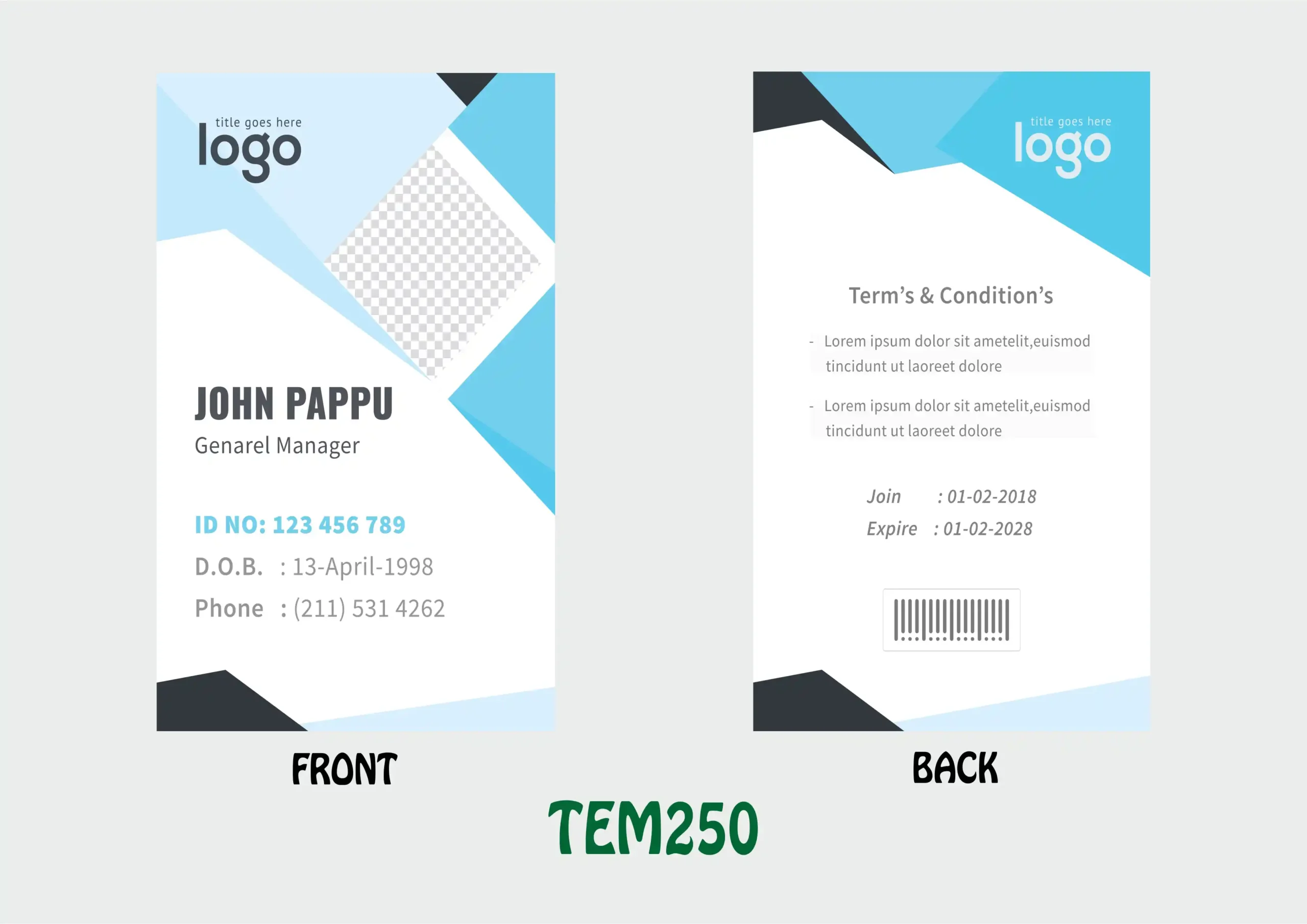 Our ID Card Templates are professionally designed and fully editable, suitable for schools, colleges, offices, factories, hospitals, coaching institutes, and corporate use. These templates help you create clean, professional, and uniform ID cards in minimum time.